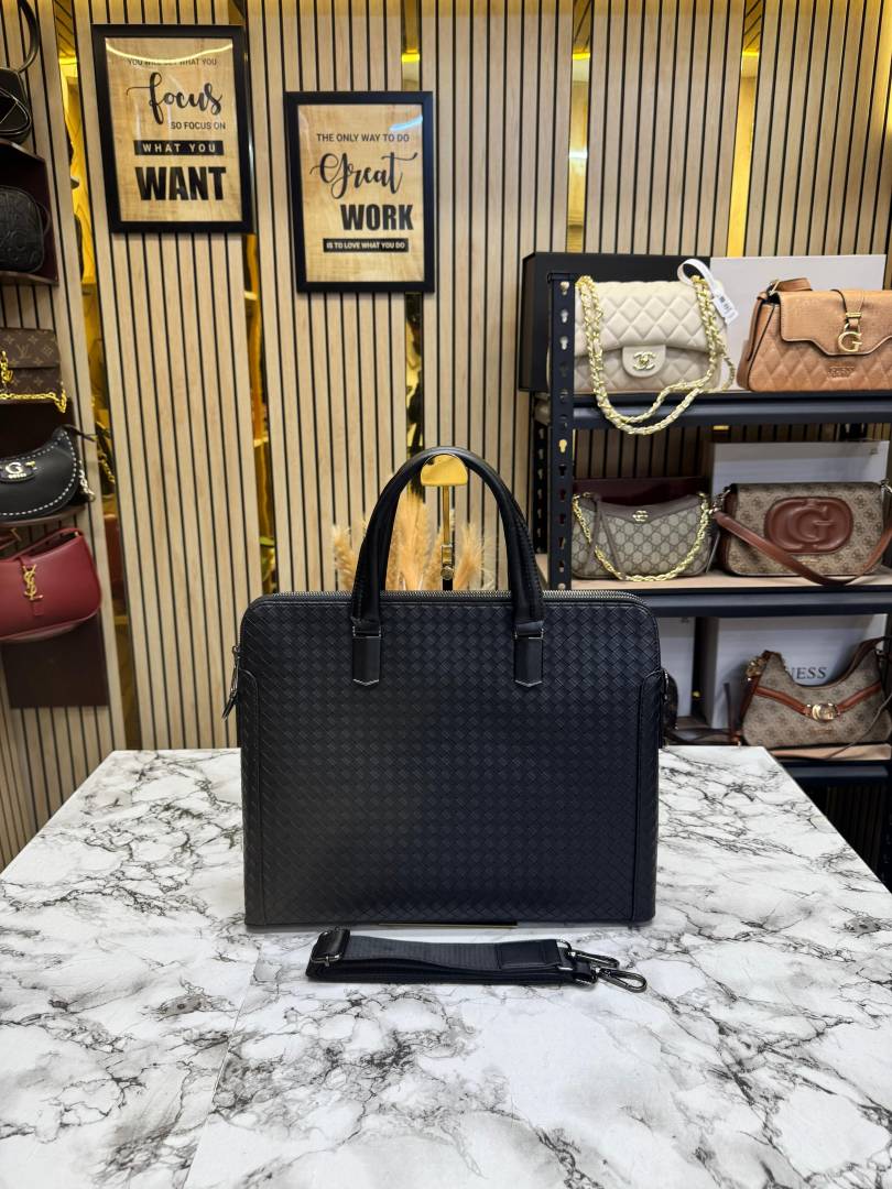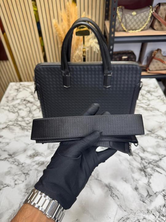 • Bottega Veneta Woven Leather Laptop Bag with Shoulder Strap (Black)