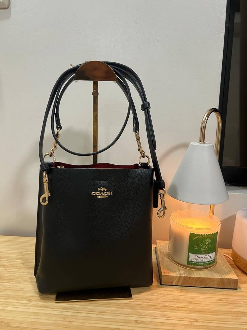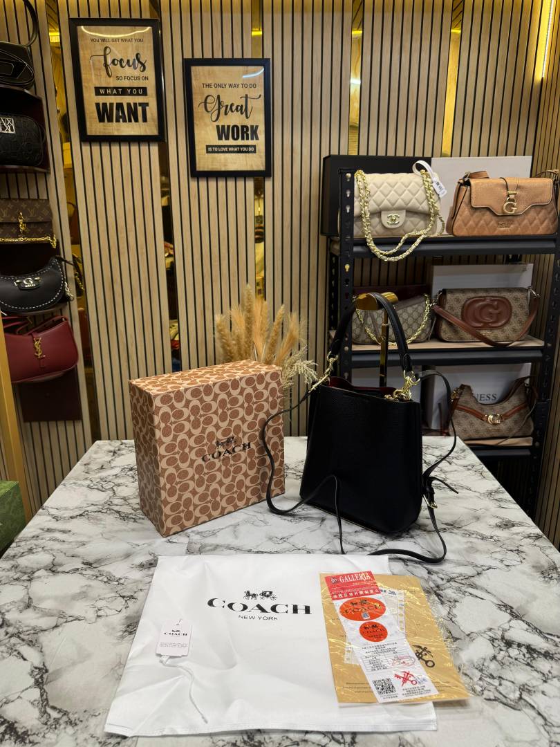 • Coac_h Mollie Leather Tote Bag With OG Box Dust Bag & Shoulder Strap With Box And Dust Bag (Coffee Black) (No Return)
