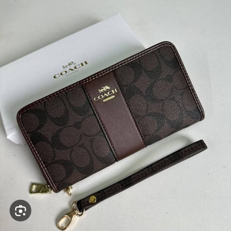 • Coac_h Signature Monogram Zip Wristlet Wallet Premium Quality With Box (Coffee) (AAA3029)