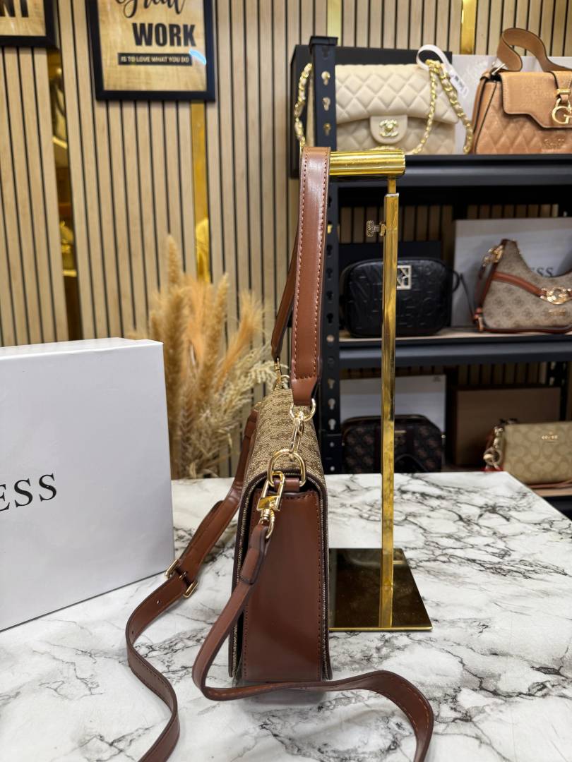 Guess Womens Eco Mietta Flap Shoulder Bag With Box And Dust Bag (Khaki)