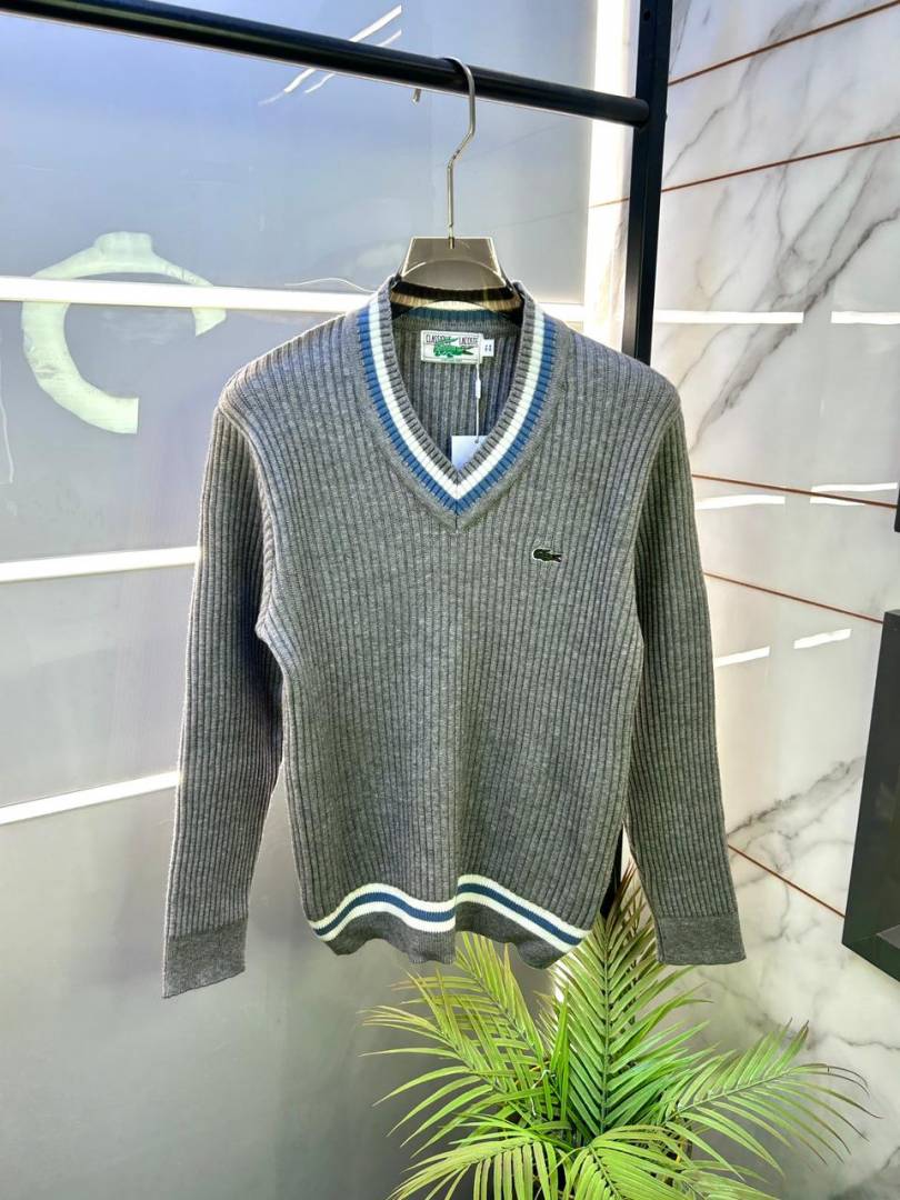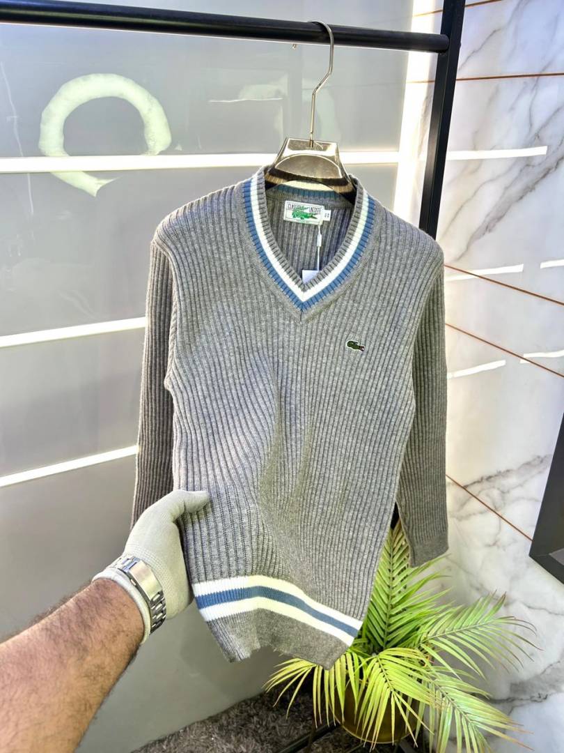 Lacost e Grey Imported knitted V Neck Super Premium Pullovers F3360-GY