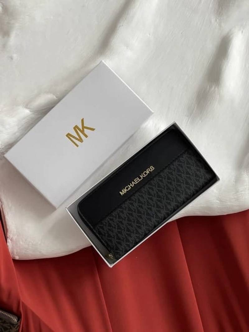 • Michael_Kors Signature MK Zip-Around Long Wallet (Black) (AAA60017)