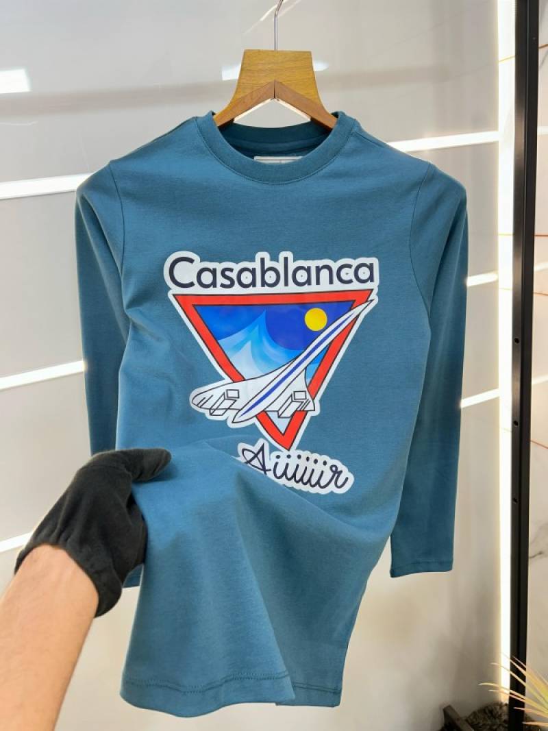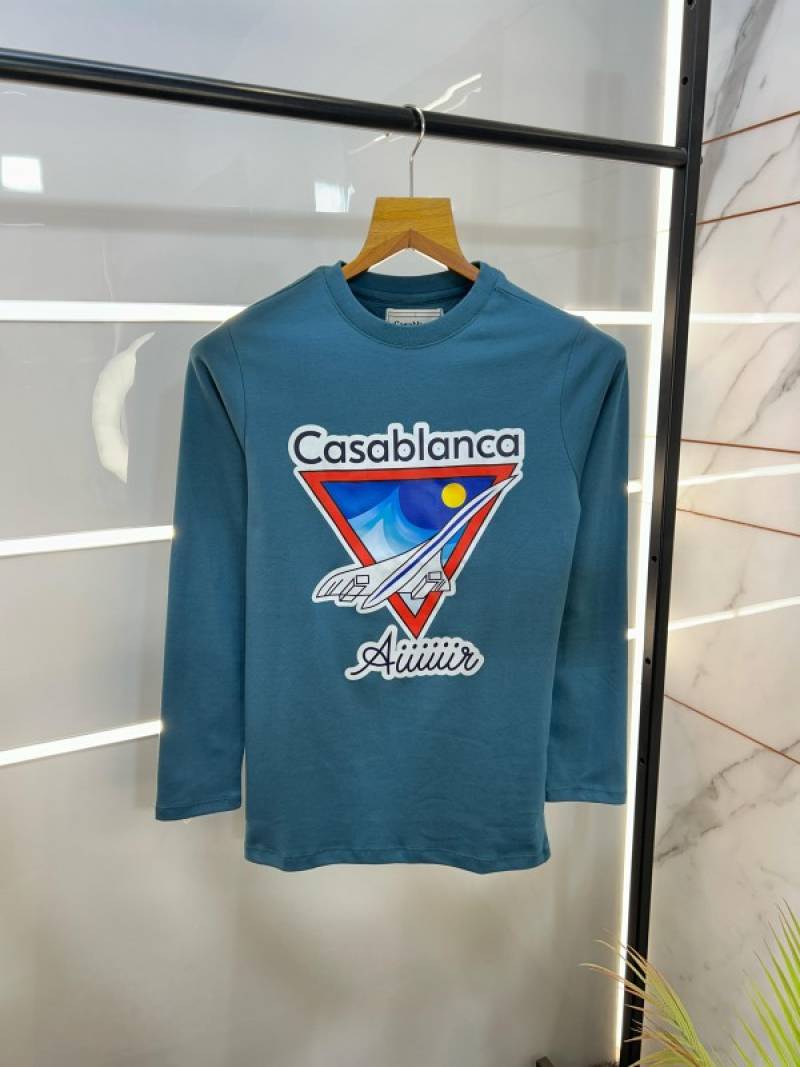 Sale Casablanca Blue Imported Printed Full Sleeves Polo Neck Premium T-shirt 699