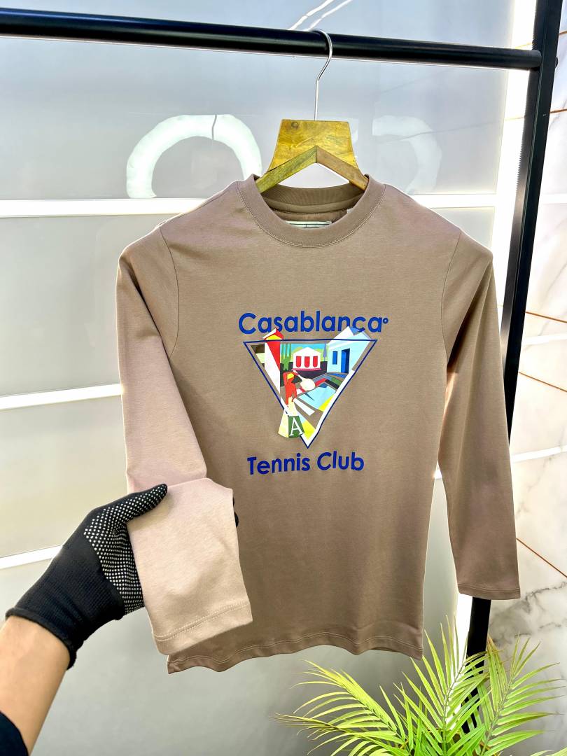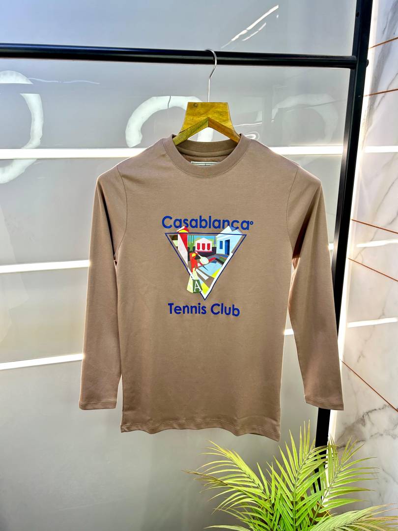 Sale Casablanca Camel Imported Printed Full Sleeves Polo Neck Premium T-shirt 699